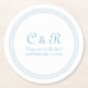 Simple and elegant Encircled Round Wedding Paper Coasters featuring a geometric circle border in blue. This chic and modern wedding design is perfect for setting the tone for a simple and sophisticated wedding. Easy to customize, simply add your wedding details in the text fields provided. Click "Customize It" to find more personalization options.