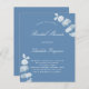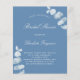 A dusty blue background, decorated with eucalyptus stems, sprigs. Personalize and add a name and party details.
