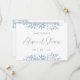 Elegant, boho save the date card features a modern geometric border and dusty blue eucalyptus leaves. Personalize with your wedding details with the easy to edit template featuring a romantic script font and modern sans serif font. Replace the photo on the back with your own and update your wedding website URL.