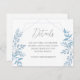 Elegant, boho horizontal "details" enclosure card features a modern geometric border and dusty blue eucalyptus leaves. Personalize with your wedding details and website URL with the easy to edit template featuring a romantic script font and modern sans serif font.