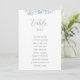 Elegant, boho seating chart card by table features dusty blue eucalyptus leaves. Personalize with your guest's names and table numbers with the easy to edit template featuring a romantic script font and modern sans serif font.