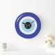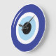This Blue Evil Eye Protection large wall clock brings style and a sense of security to your space. Featuring the traditional blue evil eye symbol, known for warding off negativity, this clock combines function with cultural significance. Perfect for any room, this eye-catching design creates a unique focal point that symbolizes protection and good fortune. The bold blue and white concentric circles make it easy to read the time while adding a protective charm to your decor.