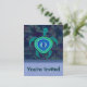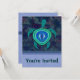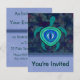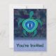 A blue sea turtle with a vivid blue eye on its back within a concentric circle pattern. Custom invitations -- fill in your own information; change the text to suit your occasion.