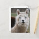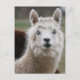 Features a photo of a beautiful blue-eyed alpaca, which looks as though he/she is having a staring contest with the camera!