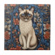 Blue Eyed Siamese Cat William Morris Inspired Ceramic Tile
