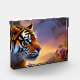 Blue Eyed Tiger and Pink Flowers Photo Block