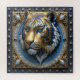 This 3D artwork mimics the craftsmanship of a goldsmith metalworker specializing in gold, silver, and other precious metals. It features a 3D tiger's portrait in metallic gold and silver tones, set against a background of intricately detailed baroque-style leaves. The artwork is printed to capture the rich textures visual effects of the metallic elements.