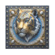 This 3D artwork mimics the craftsmanship of a goldsmith metalworker specializing in gold, silver, and other precious metals. It features a 3D tiger's portrait in metallic gold and silver tones, set against a background of intricately detailed baroque-style leaves. The artwork is printed to capture the rich textures visual effects of the metallic elements.