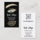 Blue Eyelash Brows Makeup Logo QR Code Gold Black Business Card