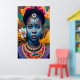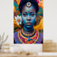 An image of a blue face African princess. This is an AI generated artwork with a floral theme.