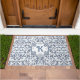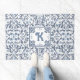 Blue Fancy Floral Pattern Personalized Doormat