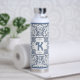Blue Fancy Floral Pattern Personalized Water Bottle
