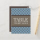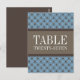 Trendy and chic Fancy Lattice Table Number Postcard featuring a stylish circle and diamond studded pattern over a vibrant dusk blue background with a broad two-toned brown border. This elegant table card is perfect for a modern wedding. Easy to customize, simply add the appropriate table number(s) in the text field provided. Click "Customize It" to find more personalization options.