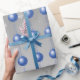Dress your presents in style with this Blue Fancy Christmas Ornament Wrapping Paper. Showcasing a fancy ornament design accented with curled ribbons, delicate fall snowflakes, and a soft gray background, it brings a polished touch to any holiday theme. The repeating tiled pattern and simple layout highlight festive Christmas baubles, making it a versatile choice for all your packages. A perfect Christmas gift supply, this wrapping paper adds elegance and seasonal charm to every present.