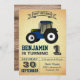 Blue Farm Tractor First Birthday Party Invitation