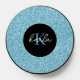 Image of a light blue glitter and sparkles texture glam design with a custom monogram on a black circle.