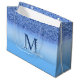 Blue Faux Glitter Monogram Elegant Large Gift Bag