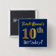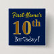 Blue, Faux Gold 10th Birthday, With Custom Name Pinback Button
