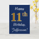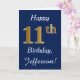 Blue, Faux Gold 11th Birthday + Custom Name Card