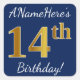 Blue, Faux Gold 14th Birthday + Custom Name Square Sticker