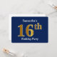 Blue, Faux Gold 16th Birthday Party + Custom Name Invitation