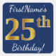 Blue, Faux Gold 25th Birthday + Custom Name Square Sticker
