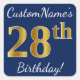 Blue, Faux Gold 28th Birthday + Custom Name Square Sticker