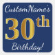 Blue, Faux Gold 30th Birthday + Custom Name Square Sticker