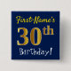 Blue, Faux Gold 30th Birthday, With Custom Name Pinback Button
