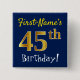 Blue, Faux Gold 45th Birthday, With Custom Name Pinback Button