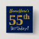 Blue, Faux Gold 55th Birthday, With Custom Name Button