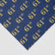 This tissue paper design features the ordinal number "61st" with a faux/imitation gold-like coloring. It also features a blue colored background. It could perhaps be used with gifts being given for somebody’s sixty first birthday, or maybe for a married couple’s sixty first wedding anniversary, or for some other 61st event or occasion. [~Z0000156]