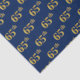 This tissue paper design features the ordinal number "65th" with a faux/imitation gold-like coloring. It also features a blue colored background. It could perhaps be used with gifts being given for somebody’s sixty fifth birthday, or maybe for a married couple’s sixty fifth wedding anniversary, or for some other 65th event or occasion. [~Z0000156]