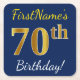 Blue, Faux Gold 70th Birthday + Custom Name Square Paper Coaster