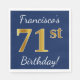 Blue, Faux Gold 71st Birthday + Custom Name Paper Napkins