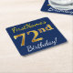 Blue, Faux Gold 72nd Birthday + Custom Name Square Paper Coaster
