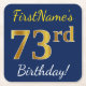 Blue, Faux Gold 73rd Birthday + Custom Name Square Paper Coaster