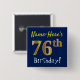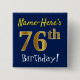 Blue, Faux Gold 76th Birthday, With Custom Name Pinback Button