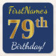Blue, Faux Gold 79th Birthday + Custom Name Square Paper Coaster