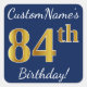 Blue, Faux Gold 84th Birthday + Custom Name Square Sticker