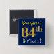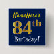 Blue, Faux Gold 84th Birthday, With Custom Name Pinback Button