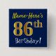 Blue, Faux Gold 86th Birthday, With Custom Name Pinback Button