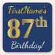 Blue, Faux Gold 87th Birthday + Custom Name Square Paper Coaster