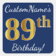 Blue, Faux Gold 89th Birthday + Custom Name Square Sticker