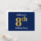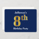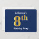 Blue, Faux Gold 8th Birthday Party + Custom Name Invitation
