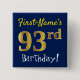 Blue, Faux Gold 93rd Birthday, With Custom Name Pinback Button