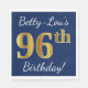 Blue, Faux Gold 96th Birthday + Custom Name Paper Napkins