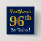 Blue, Faux Gold 96th Birthday, With Custom Name Pinback Button