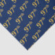 This tissue paper design features the ordinal number "97th" with a faux/imitation gold-like coloring. It also features a blue colored background. It could perhaps be used with gifts being given for somebody’s ninety seventh birthday, or maybe for a married couple’s ninety seventh wedding anniversary, or for some other 97th event or occasion. [~Z0000156]