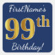 Blue, Faux Gold 99th Birthday + Custom Name Square Sticker